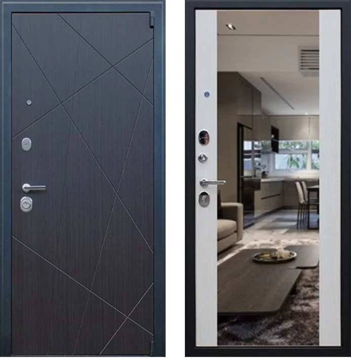 Надежная входная Дверь Вектор с зеркалом премиум класса по цене 49 437 руб. Большая толщина стали защитит от проникновения в ваш дом, квартиру или коттедж. Используется очень качественная фурнитура: замки, цилиндры, ручки, защелки. Покрытие и отделка двери изготовлено под внимательным контролем производителя. Дверь имеет долгий срок службы и гарантию.